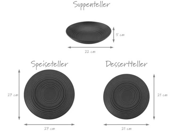 Set: 4 dinerborden, 4 diepe borden, 4 desserborden