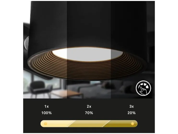 - Stel de helderheid in op 100%, 70% of 20% met de touchdimmer