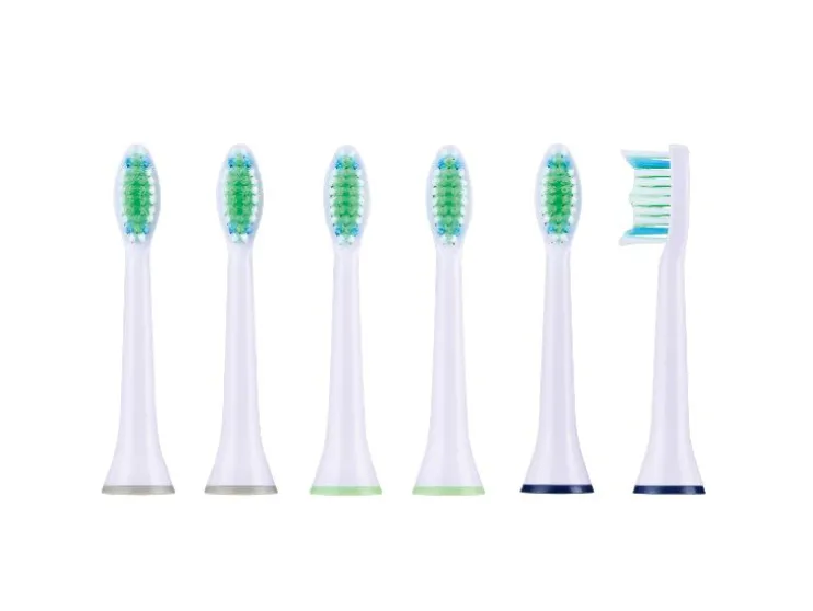 | Details: | Hoogwaardige, afgeronde borstelharen van DuPont™-Tynex®-nylonfilamenten; lichtblauwe indicatorborstelharen (geven aan wanneer vervanging nodig is); met gekleurde markering: 3 kleuren à 2 opzetstukken; compatibel met Philips-Sonicare™-oplaadbare tandenborstels |
