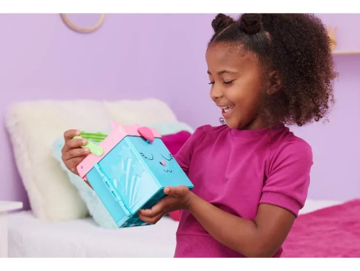 Naast de vele gedetailleerde accessoires wordt deze speelset ook geleverd met een Cat Delivery verrassingsdoos. Net als Gabby aan het begin van elke aflevering kunnen de poppenhuisleveringen worden geopend om een mysterieus accessoire van de set te onthullen. De Regenboog Kledingkast speelset kan na het spelen weer tot een doos worden opgevouwen en kan dankzij de praktische draaggreep overal mee naartoe worden genomen. De meegeleverde touwladder kan bovendien aan het Purrfect Poppenhuis (apart verkrijgbaar) worden bevestigd om een verbinding tussen de 2 speelsets tot stand te brengen en de Gabby’s Poppenhuis speelgoedwereld uit te breiden. Passend bij de speelset zijn er ook figurensets op de juiste schaal, waaronder een cadeauset met Gabby en 6 kattenkarakters (apart verkrijgbaar), die Gabby kunnen helpen bij het stylen. De geweldige Gabby’s Poppenhuis speelgoed van Spin Master zijn het ultieme cadeau voor kinderen en fans van de animatieserie vanaf 3 jaar.
