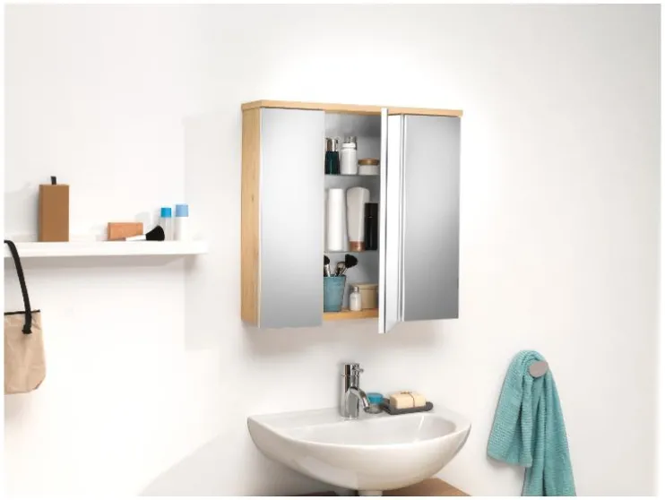 | Materiaal: | Melamineharsgecoate spaanplaat, Eiken, Spiegel |
