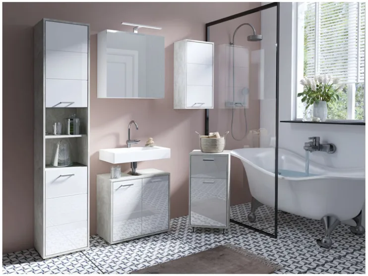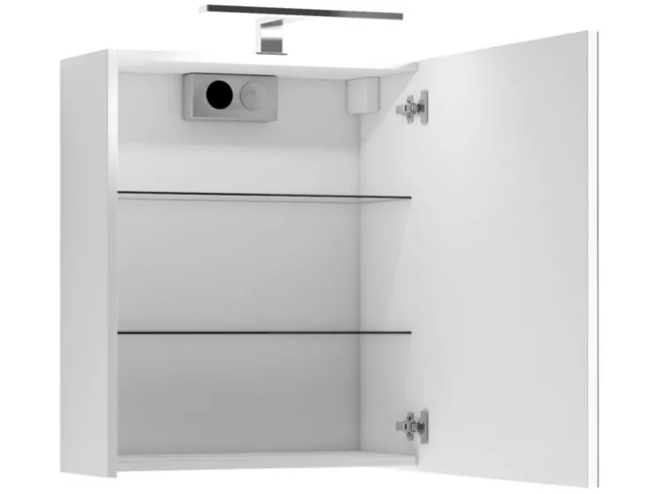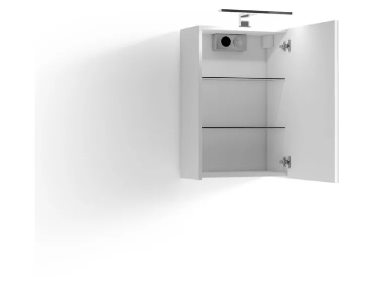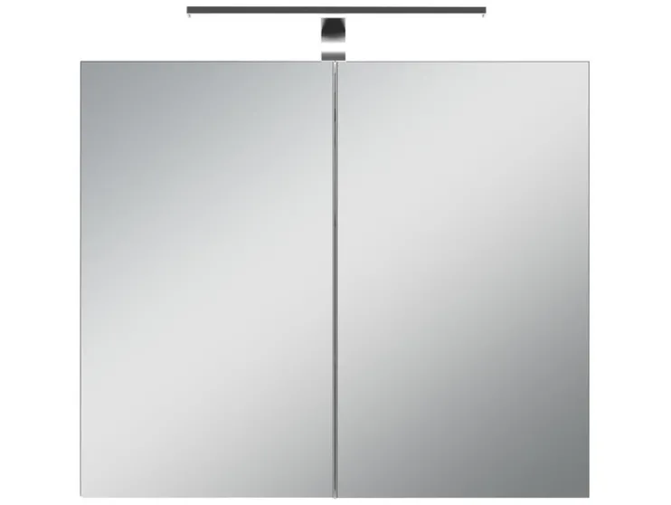 De spiegelkasten SPREE zijn beschikbaar in de breedtes 40, 50, 60, 70 en 80 cm. Daarbij zijn ze bijzonder goed uitgerust, met meerdere, verstelbare glazen inlegbodems, soft-close scharnieren voor de deuren en een LED-staaflamp. Bovendien zit er in het binnenste van de kast nog een praktische schakelaar- en stekkerdoos. Het aantal deuren hangt af van de breedte van de kast. 40, 50 en 60 cm – 1 deurs 70 cm- 2-deurs 80 cm – 3-deurs
