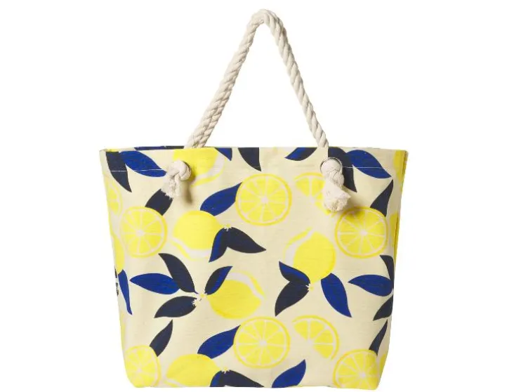| Materiaal: | Strandtas: 50 % polyester, 45 % katoen, 5 % viscose; Bikinitas/hoofdkussen: thermoplastisch polyurethaan |