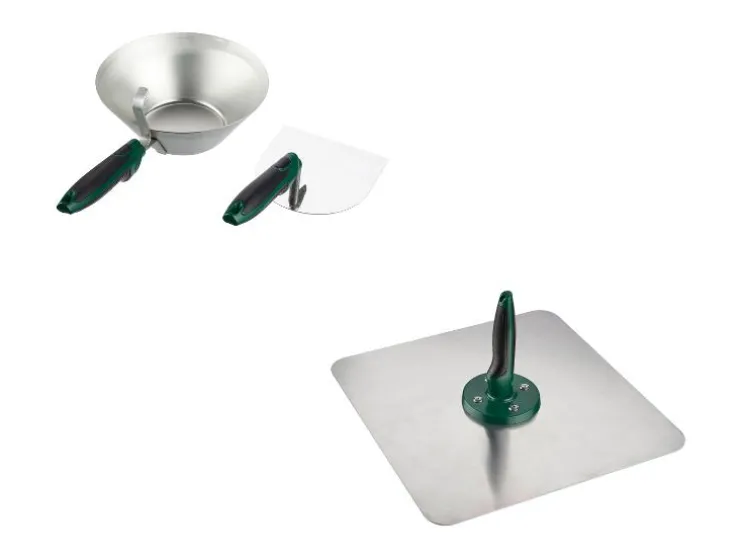 | Materiaal | Pleisterset: Grepen: Kunststof; Lepel: Staal; Troffel: RVS Mortelplaat: Grepen: Kunststof, Bord: Aluminium; Handsteun: PP |