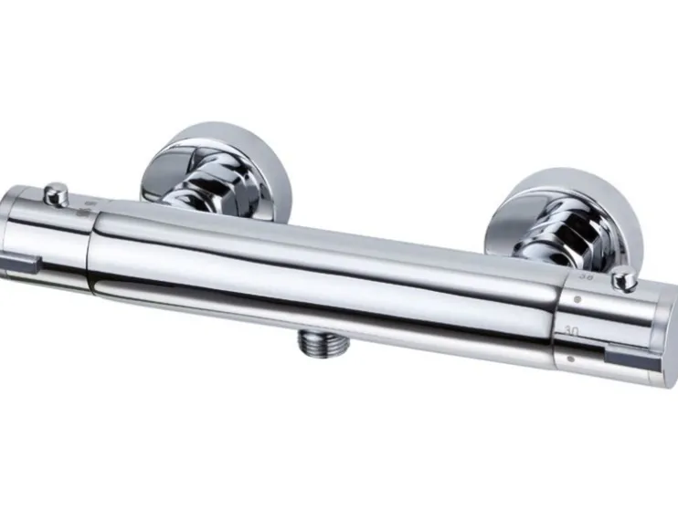 De thermostatische douchekraan »CLAUDIO« is gemaakt van hoogwaardig messing en heeft verchroomde kunststofgrepen, die voor een lange levensduur zorgen. De doucheaansluiting is standaard ½” (Ø ca. 1,9 cm) en de afmetingen bedragen ca. 268 x 39 mm (L x H). Het totale gewicht bedraagt 1,1 kg.