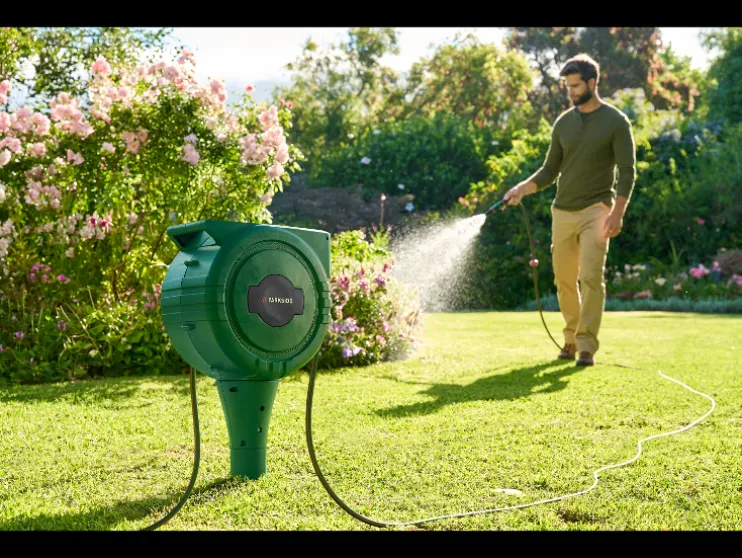 - Alzijdig draaibare slangbox met comfortabele automatische oprolfunctie en zachte intrekking