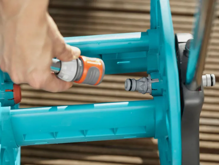 De GARDENA tuinslangwagen Clever Roll S maakt een comfortabele opslag van de tuinslang mogelijk. Door de schuine slangaansluiting binnen in de trommel wordt de slang niet geknikt. Zo is een maximale watertoevoer altijd gegarandeerd. Door de grote, stabiele slinger laat de slang zich betrouwbaar oprollen. Voor een ruimtebesparende opslag in de garage of in het tuinhuisje kan de handgreep naar beneden worden geschoven. Een druppelstop zorgt ervoor, dat er geen water uitloopt na het gebruik of bij het transport van de slangenwagen. De slangenwagen is vorstbestendig.