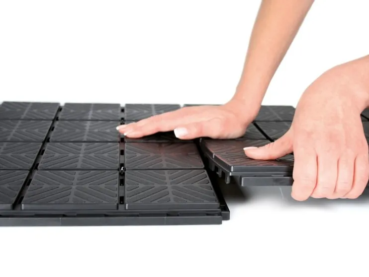 - De individuele kunststof tegels kunnen eenvoudig worden aangesloten met behulp van het kliksysteem en kunnen naar wens worden uitgebreid