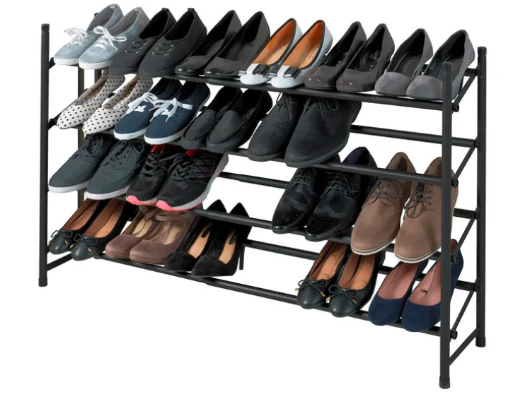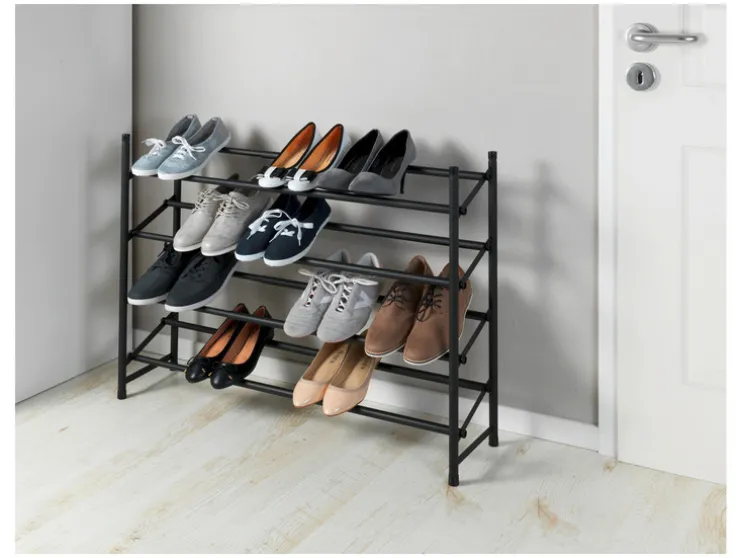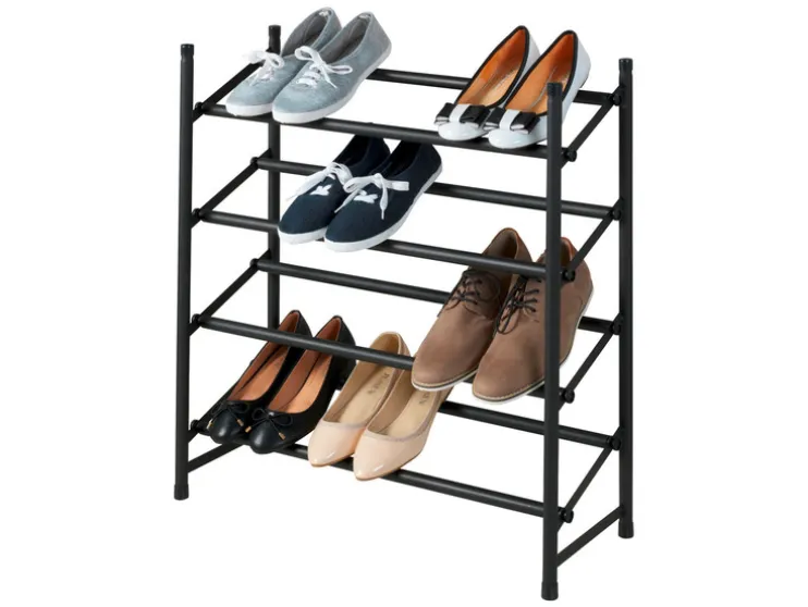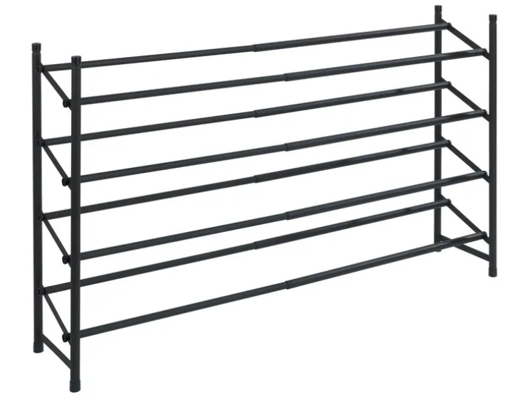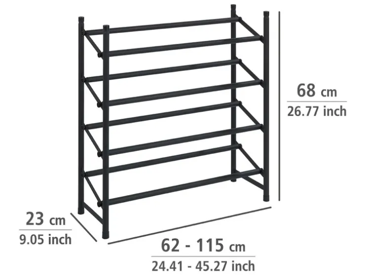 Dankzij de telescoopfunctie (uittrekbaar van 62 tot 115 cm) biedt de open schoenenkast royale en overzichtelijke opbergruimte voor maximaal 24 paar schoenen op vier planken. De rekken kunnen naar wens worden uitgebreid en er kunnen meerdere rekken op elkaar worden gestapeld.