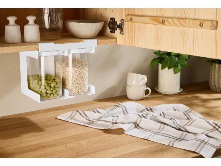De SILVERCREST® vershoudbakjes met rek zijn ideaal voor kleine keukens. Hang ze eenvoudig onder een plank of kast en bewaar je droge levensmiddelen netjes en overzichtelijk.