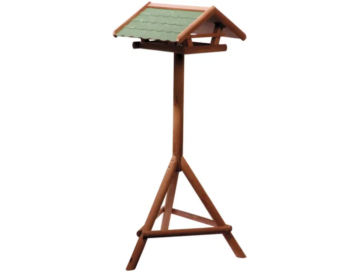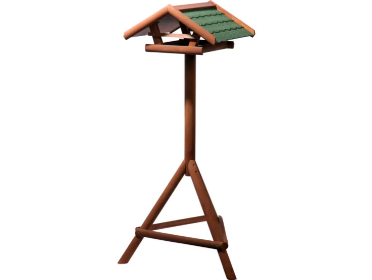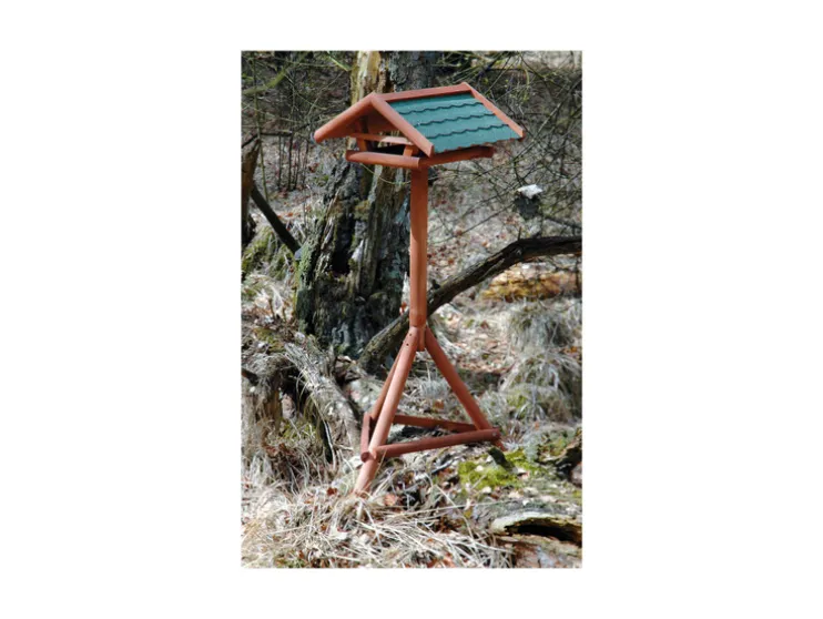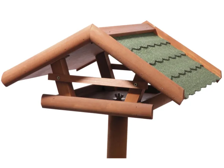 Onze voederstation is gemaakt van weerbestendig gelakt naaldhout, dat niet alleen is, maar ook een natuurlijke en warme sfeer in de tuin creëert. Het bitumen dak beschermt de gevederde bezoekers betrouwbaar tegen regen en andere weersinvloeden.