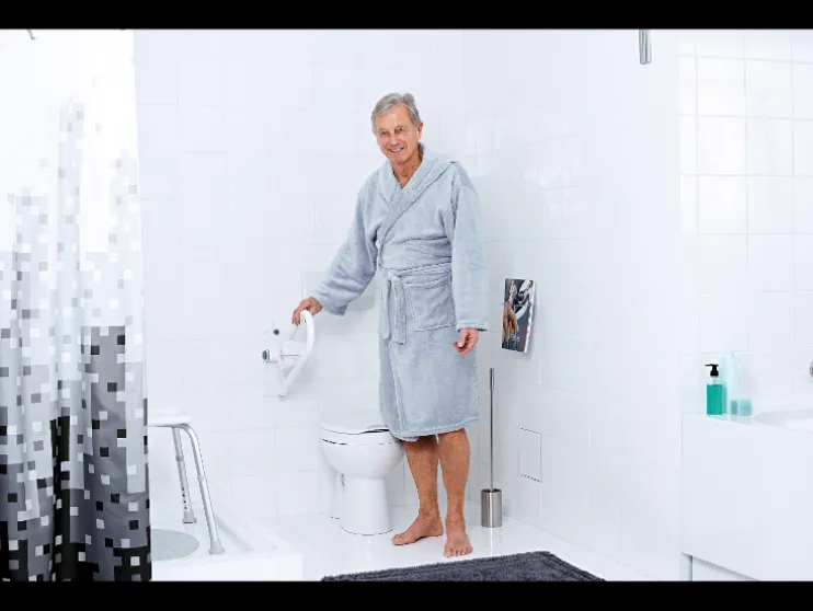 Maak je badkamer veiliger en praktischer. De Ridder wandbeugel Tim biedt stevige ondersteuning en is ruimtebesparend opklapbaar.