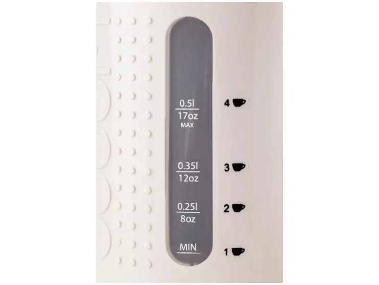 - Waterstandaanduiding in liters, ounces en kopjes zodat je nooit te veel water kookt
