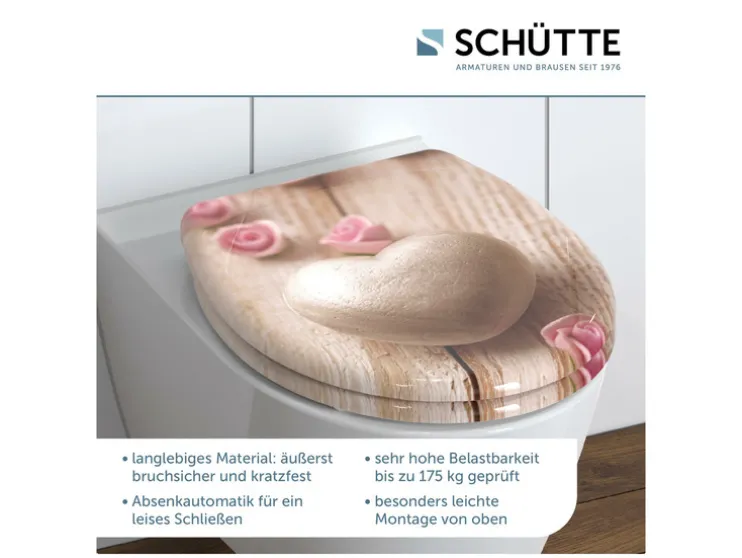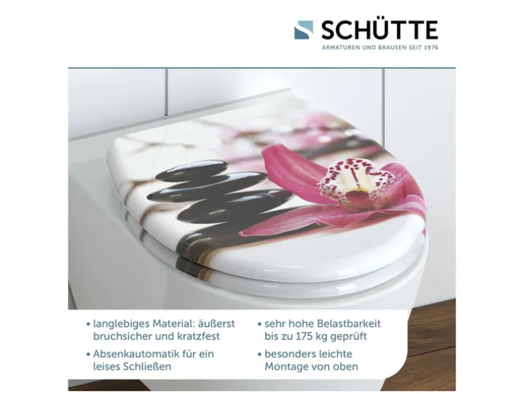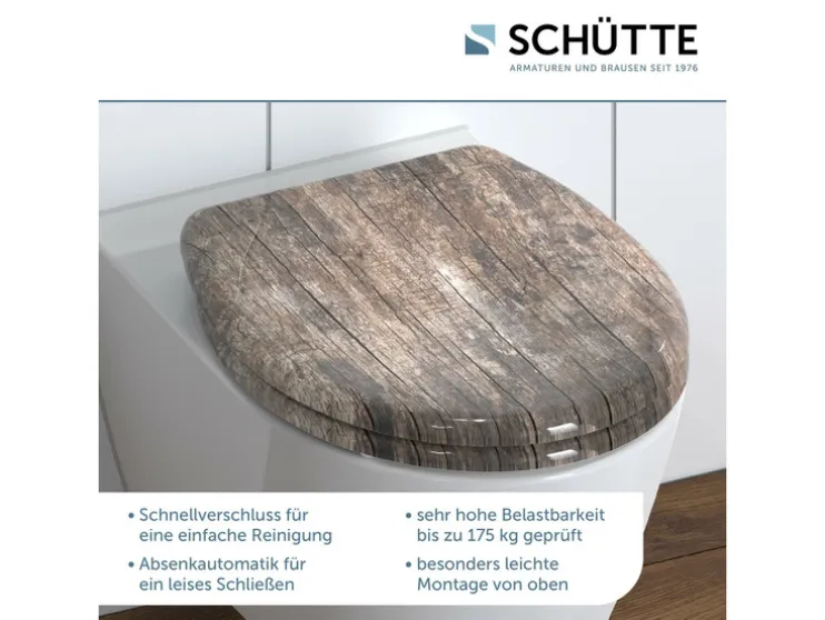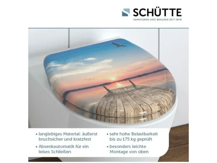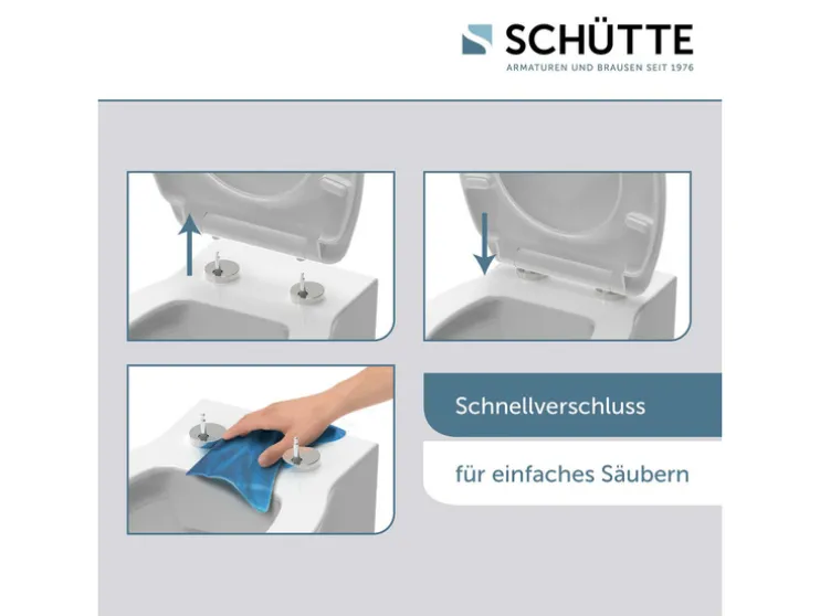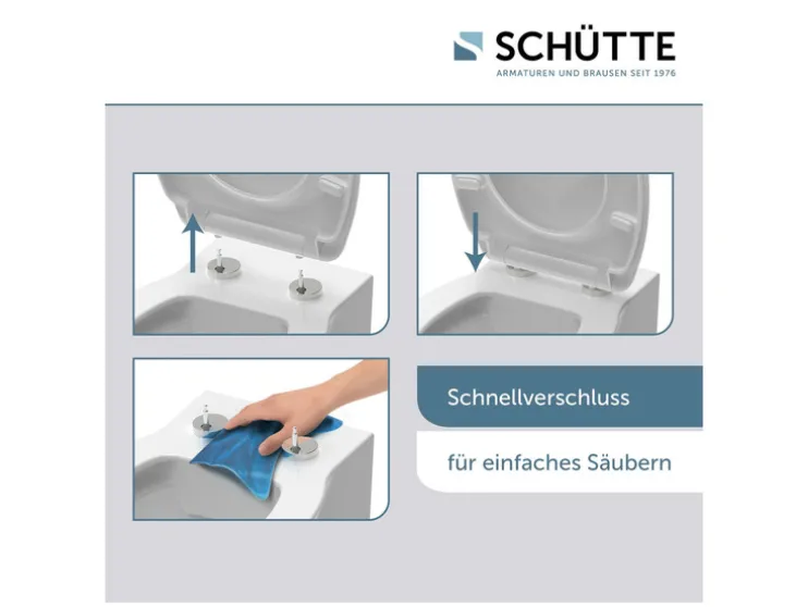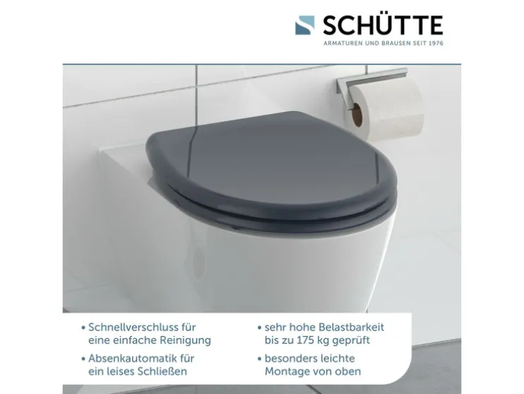 - Hoogwaardige SCHUTTE toiletdeksel met soft-close-mechanisme (deksel en zitting sluiten zacht en geruisloos)