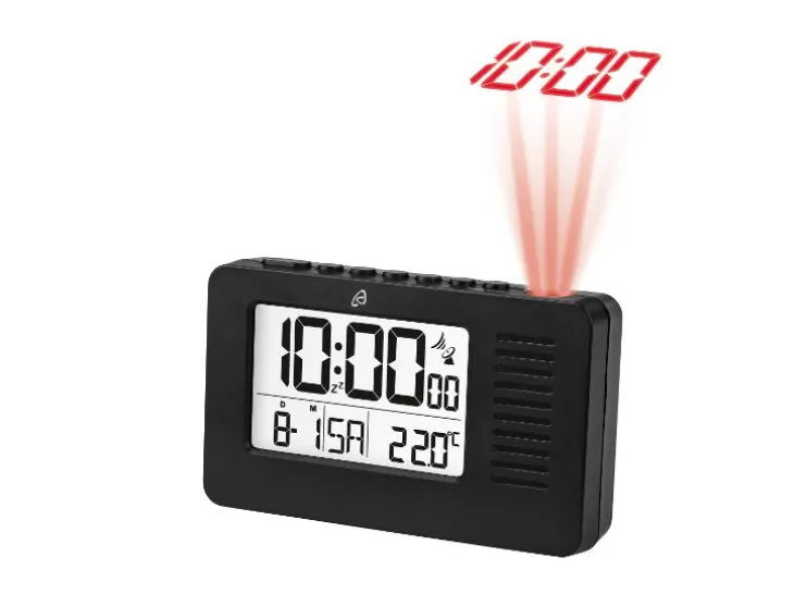 | Functies: | Projecteert op knopdruk naar keuze de tijd of de kamertemperatuur op het plafond |