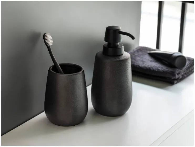 | Materiaal: | Zeepdispenser: keramiek; Pompkop: kunststof; Tandenborstelhouder: keramiek |